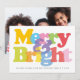 Modern Colourful Merry And Bright Photo Christmas Holiday Card