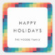 Happy Holidays sticker label. A minimalist and simple multi coloured mosaic holiday design.
