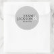 Classic round wedding sticker with your names and date, easily updated with your particulars. This one is a light grey - change the colour if you wish, but be sure to view the coordinating products in our store for this particular collection.