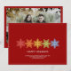 Simple modern Christmas Holiday card featuring a row of brightly coloured holiday snowflakes and family photo (back). Minimalist typography. Clean simple design. All text areas personalizable. Contact for assistance in personalising or customising to your individual wishes. Happy holidays!