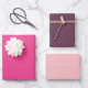 Elevate your gift presentations with our modern coloured wrapping paper sheets in neon pink-purple, dark berry purple, and rosy pink.