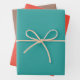 Elevate your gift presentations with our modern coloured wrapping paper sheets in rich teal, bright orange red and cocoa brown.