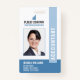 A modern employee id badge. The design features your company logo, business name and tag line. It shows a well sized employee id photo. Information can be personalised and so far includes the employee's name, badge ID number, as well as date issued and the expiry date. A bar on the right side shows the employee's occupation in large bold letters. This bar can also be used to show a department if preferred.