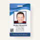 Personalised abstract ID badge with a cool modern wavy blue design above the software engineer or IT repair technician employee photo. Add your own photograph and custom information, including job title, department name, ID number, issue or expiration date and company or business name and logo. Can be customised with your personal security barcode on the back for access and clearance.