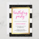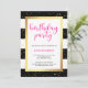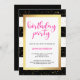 These glam, modern birthday party invitations feature trendy black and white stripes with faux gold confetti and a matching frame. Bright pink typography says "birthday party" at the top.