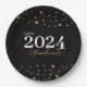 Modern Confetti Black Gold Class of 2024 Graduate Paper Plate