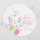 Beautiful simple grey pink blue and green flower outline and graphic confetti flower petals round circle wedding invitation. Edit this invitation with your words. Uniquely illustrated and designed by Sarah Trett.