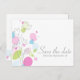 A beautiful and simple pink, blue green and grey flower outline and graphic petals save the date wedding postcard. Part of the graphic modern flower petal wedding set. An elegant exclusive design by Sarah Trett.