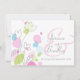 Beautiful simple grey pink blue and green flower outline and graphic petals small wedding invitation. Edit this invitation with your own words. Unique design by Sarah Trett for www.mylittleedenweddings.com