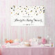 Modern baby shower banner featuring black, blush and copper-gold confetti dots and modern calligraphy script. Other colours and matching items are available.