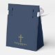 Modern confirmation favour box with a golden cross on a blue background and a hand lettered script name. Personalise with name, text and date.