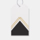 A modern gift tag featuring customisable congrats message with gold and black triangle elements.
