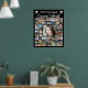 Celebrate your graduate with a poster print of photo memories through the years with this easy-to-upload photo collage template with 52 square and rectangle pictures to accommodate a variety of photo subjects. The design features your custom text in your choice of font styles and colours (shown with a modern calligraphy script in white) accented by graduation caps or mortarboards and diplomas against an editable black background colour. All text and graphic colours can be changed to school or party theme colours. Makes a great decoration at a graduation party and commemorative keepsake. OPTIONS: The sample is shown in a 24x30" size on Value Paper (matte); other standard and custom print sizes and paper quality, DIGITAL DOWNLOAD or transferring the design to a foam board, banner, tapestry or other product options are available on the ordering page. TIP ON RESIZING: Choose Custom Size for even borders by changing the height and width proportionately AFTER clicking the UNLOCK icon. ASSISTANCE: For help with design modification or personalisation, colour change, resizing or transferring the design to another product or converting to a Download file, contact the designer BEFORE ORDERING via the Zazzle Chat MESSAGE tab below or email makeitaboutyoustore@gmail.com.
