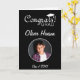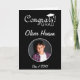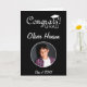 Modern Congrats Grad Graduation Photo Card. Personalised graduation card with custom text and a photo in a round frame on a black background. Add your text inside or erase it.