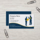 Construction business cards in an online template designed with two construction professionals in the background and colour coordinated modern design element you can customise online. Best construction business cards for a contractor, building contractor, construction company or developer.