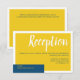 Minimalist and contemporary wedding reception enclosure card with a modern layout in blue and yellow.