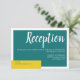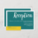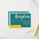 Minimalist and contemporary wedding reception enclosure card with a modern layout in teal green and yellow.