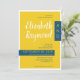 Minimalist and contemporary wedding invitation with a modern layout in blue and yellow.