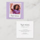 Simple, modern, and fun business card with your photo in a white frame overlay and a trendy handwritten script typography design. On the back is a minimalist layout for all your contact information including social media. This is the light purple version.