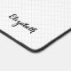Custom, personalised, elegant, stylish, cool, trendy, beautiful black script / typography / calligraphy on white, modern squares lines classic design pattern background, home office business, name / monogram / initials, durable hemmed edge 3mm thick neoprene customisable gaming / typing / writing / crafting multifunctional desk mat. Simply type in your name / family name / student name / teacher name / business / company name / couple's names, to personalise. Perfect for both, home and business, personal and office use, game room, designer / architect office. Makes a great gift for mum, dad, girlfriend, boyfriend, kids, friends and family, on birthday, housewarming, christmas, holidays, graduation, and more.
