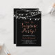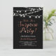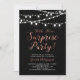 Celebrate a special day with this modern surprise party invitation! This design features a stylish script typography with a copperr texture and light strings. You can customise the background colour.