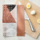 Modern Copper Teal Blue Black Geometric Patterns Tea Towel