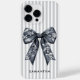Modern Coquette Grey Stripes Girly Bow Custom Name Case-Mate iPhone Case
