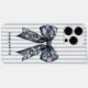 Modern Coquette Grey Stripes Girly Bow Custom Name Case-Mate iPhone Case features a delicate dark grey floral bow in toile de Jouy style, set against soft grey and white vertical stripes. The clean modern font adds a personalised touch for a girly but elegant look. Perfect for coquette style lovers or anyone who adores chic, feminine design with a hint of vintage flair.