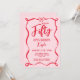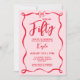Celebrate a half-century in style with this modern and unique red and pink coquette 50th birthday invitation! This milestone design features a trendy aesthetic with a preppy ribbon wavy frame and an elegant bow. Combining modern whimsical style with chic script calligraphy, it is the perfect choice for a sophisticated fiftieth birthday party, whether it’s a glamorous cocktail hour or an intimate dinner. Stand out from the crowd with this bold, fashion-forward palette that proves fifty is the new fabulous. Available as high-quality printed cards or as an instant download for easy digital sharing!