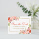 Modern Coral Floral Gold Save the Date Announcement Postcard