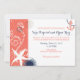 Modern and simple design of starfish, sea shell, sailboat anchor, beach sand and solar shapes in combination of coral + navy blue + white colours illustrated on custom Formal Wedding Invitations. ((You can find the matching wedding essentials & favours in this store, Bridal Heaven. Contact ujean4791@gmail.com for custom work and/or coordinating wedding stationery.))
