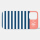 Modern Coral Navy Stripes Custom Monogram Case-Mate iPhone Case