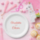 The Modern Coral Pink Script Wedding Party Plate features the bride’s and groom’s names displayed in elegant coral pink script lettering. The minimalist layout creates a soft and modern look that works beautifully for wedding receptions and celebrations.