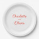 Modern Coral Pink Script Wedding Party Paper Plate