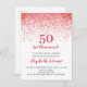 Modern Coral Red Glitter Confetti 50th Birthday Invitation Postcard