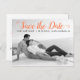 Modern coral script wedding Save the Date photo postcard. This contemporary typography Save the Date design features a black and white photo of the couple and the text "Save the Date" in a modern script font.
