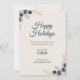 Modern Corporate Holiday Eucalyptus Navy & Gold Card
