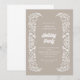 This corporate holiday party invitation featuring white hand drawn winter foliage on a tan background.