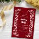 This corporate office holiday party invitation featuring white hand drawn winter foliage on a dark red background.