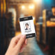A modern business ID badge featuring the photo, name, occupation of a staff member. The corporate employee ID also includes the business name and logo of the company. The colour of any design element of this ID badge can be personalised.
