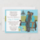 Cute Baby Shower Invitation for a baby boy. This blue invitation features a modern couple with a crib and chandelier.