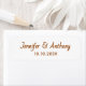 Celebrate your special day with this Modern Couple Names & Date Wedding Label in elegant bronze. The clean design highlights both names and the wedding date for a timeless look. Perfect for invitations, favours, or thank-you envelopes to add a personal touch.