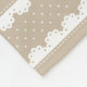 Beautiful beige & white fleece blanket with polka dots and stripes.