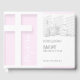 Simple and modern white Christian cross with drop shadow. Design on guest book for Baptism Ceremony in pale pink with text to customise. You can easily change photo and text (colour, font, size and position) by clicking the customise button. Matching Baptism invitation cards. Available in pale blue for boys.