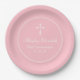 These paper plates feature a pop of colour and your custom text under a white cross. Use the template form to add your personalisation.