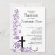Our stylish cross floral holy baptism Invitation is an modern & fun first impression for your baby's special christening day. Our purple & white invitation features a beautiful stylish purple floral frame set on a crisp white background. The back of our has a matching colour for a extra special touch. Modern fun design sure to impress your guest. Perfect invitation for a first holy communion, baptism, christening or confirmation party. Visit our shop for additional colour choices for a baby girls christening, baby girl baptism, baby boy baptism & baby boy christening. ©Mujka