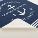 Nautical boating sherpa blanket in navy blue reading "welcome aboard" as well as your custom boat name and location.