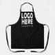 Modern custom business logo on black promotional all over print apron. Change logo and text with your own. Customise it to resize.