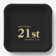 Modern Custom Gold Black 21st Name Date Paper Plate