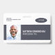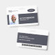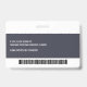 A modern and simple badge that does not distract from the important details. Easy to read from afar. Add a custom logo and company details. Add the employee's name, photo, and professional title. The bar of colour can be modified to match the company's official colours. At the back, add more information such as return address and the employee's ID number.